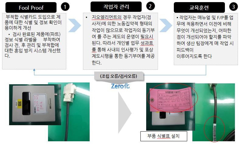 → 가시적인 장치를 다양하게 마련한 fool proof와 작업자 관리 및 작업자의 교육훈련을 통하여