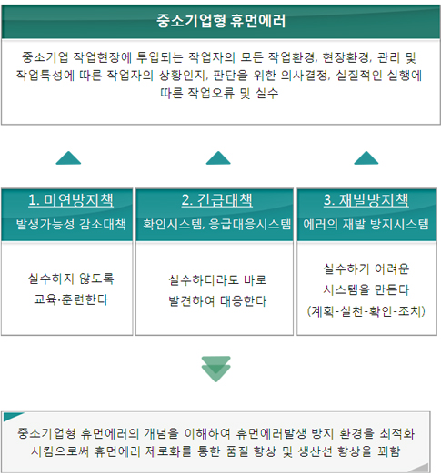 중소기업형 휴먼에러의 재정립을 통해 휴먼에러를 미연에 방지하고, 긴급 대응책을 마련하며, 재발을 방지하는 효과를 얻을 수 있습니다.