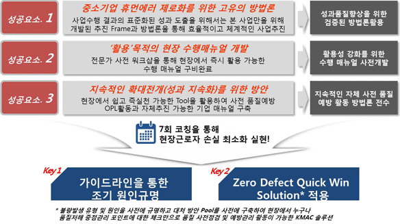 KMAC는 성공적 추진을 위해서 검증된 방법론과 전문성이 확보된 추진조직 및 체계가 ![]() KMAC는 다음과 같은 KEY 2가지를 중심적으로 현장근로자 손실 최소화 사업이 진행 될 것입니다. ![]() ![]() |